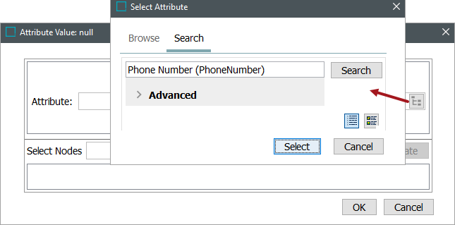 2. On the Attribute Value dialog, click the selector button () to display the Select Attribute dialog.
