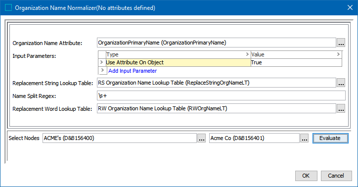 On the Organization Name Normalizer dialog: