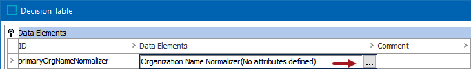 After adding the organization name normalizer in the Data Elements flipper of the Decision Table dialog (defined in the topic Match Criteria), configure it as follows: