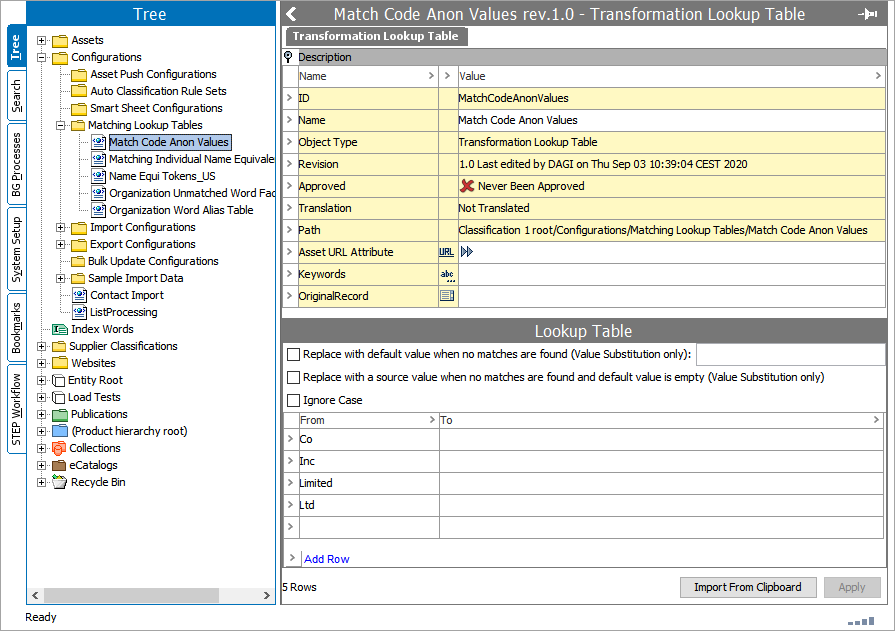 For more information, refer to the topic Transformation Lookup Tables in the Resource Materials online help documentation. |