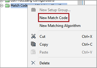 In System Setup, right-click the node configured to house match codes and select New Match Code.