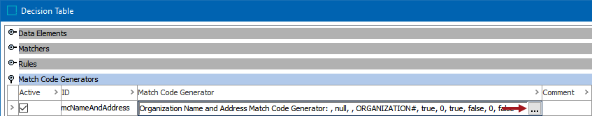 After adding the match code generator in the Match Code Generators flipper of the Decision Table dialog (defined in the topic Match Criteria), configure it as follows: