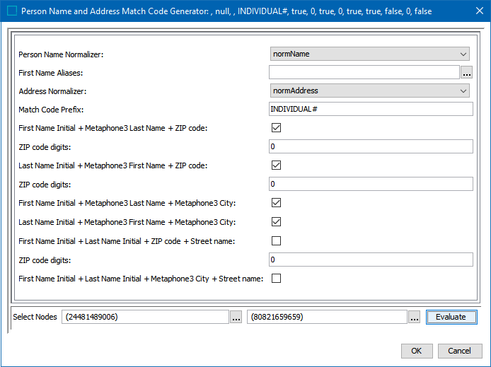 For the optional First Name Initial + Metaphone3 Last Name + Zip code, check to create this match code. Refer to the Recommendations section above.