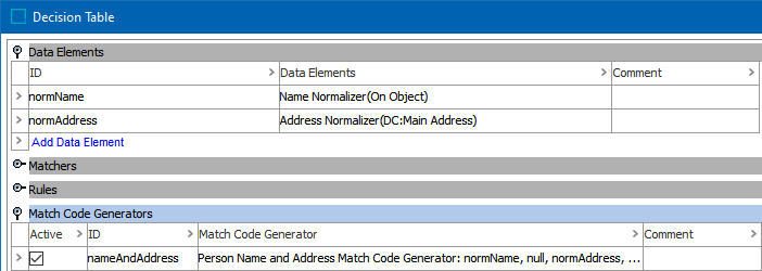 After adding the match code generator in the Match Code Generators flipper of the Decision Table dialog (defined in the topic Match Criteria), configure it as follows: