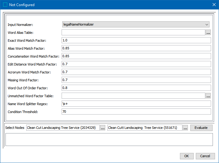 • For the required Edit Distance Word Match Factor, enter how greatly pairs via edit distance influence the final score.