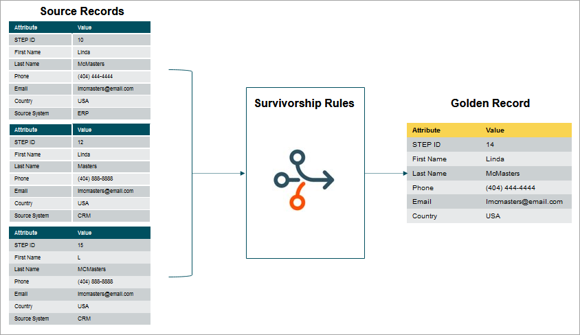 Note: A survivorship rule should never update values outside the golden record.