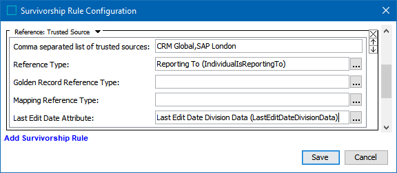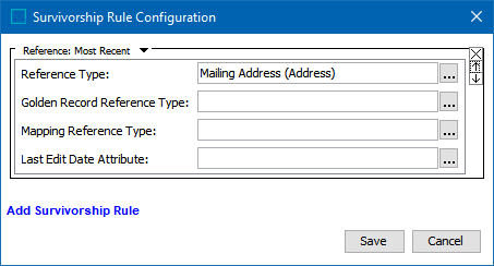 • Golden Record Reference Type - Optionally, click the ellipsis button () to specify the reference type that links the target golden records and target source objects.