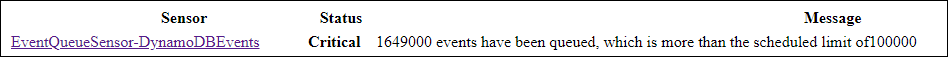 The details show that event queue 'DynamoDBEvents' has too many events queued.