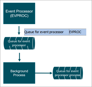 The legacy Queue for event processor parameter stores the queue that is used by the background process to poll the event processor. The default value is EVPROC.