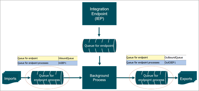 The legacy Queue for endpoint processes parameter stores the queue that is used by the background processes to handle the actual export. The default value is Out.