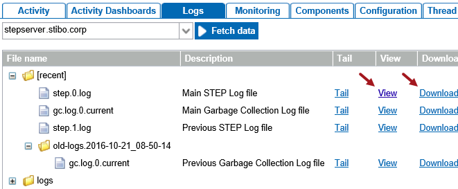 - Select the Main STEP Log File and click either the View link or the Download link to review the log.
