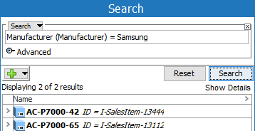 Search using 'Name = value' to search for objects by looking in the Name parameter only. For example, search for the 'AC-P7000-42' value only in the Name field.
