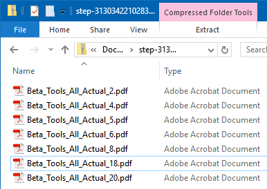 - The contents of the delivered .ZIP file should resemble the following, if 'Make Single PDF' was left unchecked.