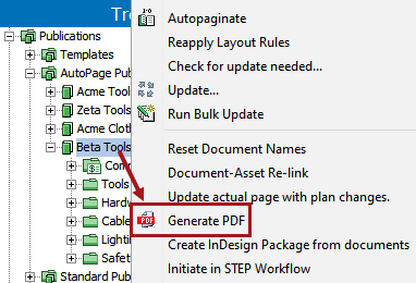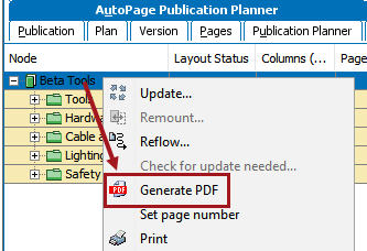 Or, from the AutoPage Publication Planner, select and right-click the preferred row, then choose Generate PDF.