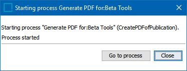 - Click OK to start the Generate PDF background process. Click Go to process to go to the BG Processes tab, or, click Close to exit the dialog.