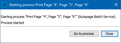 - The 'Starting process Print Page' dialog displays. Click Go to process to monitor the progress of the Autopage Batch Service on the BG Processes tab.
