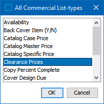 - If the commercial list object type that you need is not visible in the list, click All choices at the bottom of list to display the All Commercial List-types dialog. Choose the relevant list type, then click OK.
