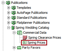 - In the Tree, navigate to the relevant publication in the publication hierarchy. This will be the publication that the commercial terms list should be linked to.