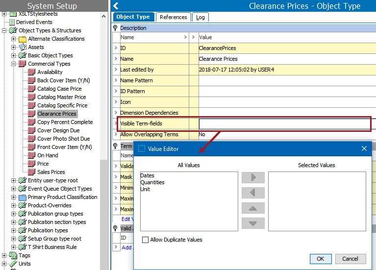 - Double-click the column next to the Visible term-fields field to display the Value Editor.