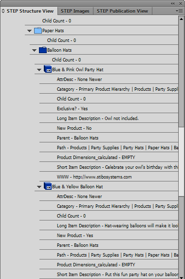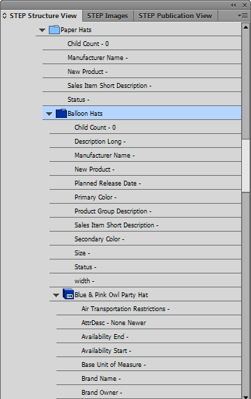 - The following screenshot shows a sample STEP Structure View with Show all Attributes in Tree selected: