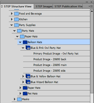 - Show Asset References in Tree: Check this box to display the STEP asset references linked to Products and Classifications in the STEP Structure View panel, thus making them available for page mounting and converting sample documents into product templates.