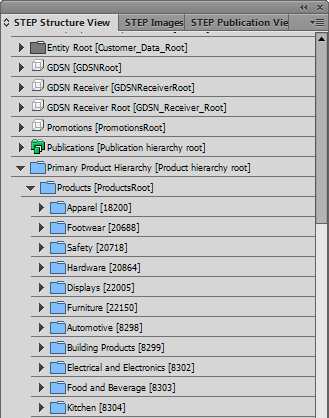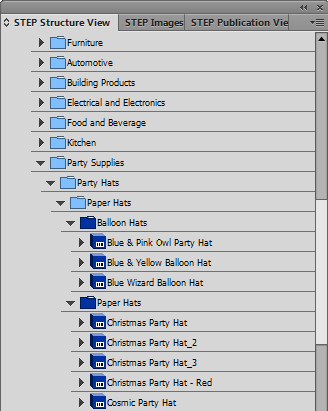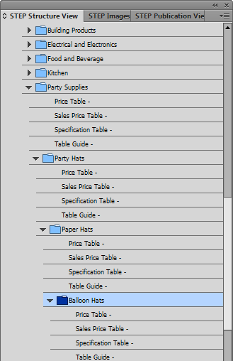 - Show Tables in Tree: Check this box to display the tables that are linked to products and classifications in the STEP Structure View panel, thus making them available for page mounting and for converting sample documents into product templates.