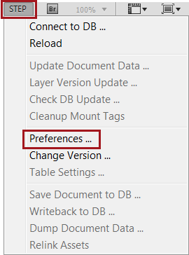 The Preferences menu is accessed by navigating to STEP > Preferences ... from the InDesign application bar across the top of the InDesign interface.