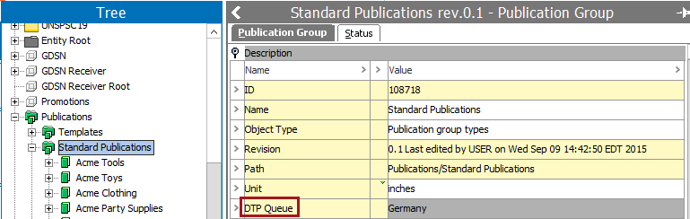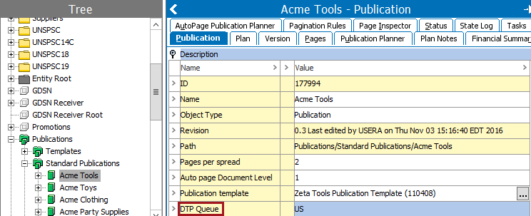 Publications and publication groups can be set to use a particular queue via the DTP Queue list, which, for publications is located on the Publication tab and for publication groups is located on the Publication Group tab. If only one queue exists, or if no queue is specified on the publication or publication group, the queue designated as the Main Queue in the DTP Queue Editor will be used.