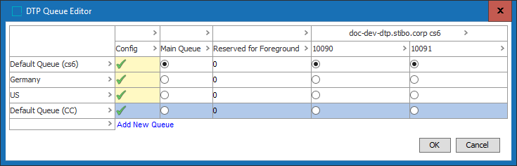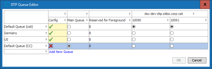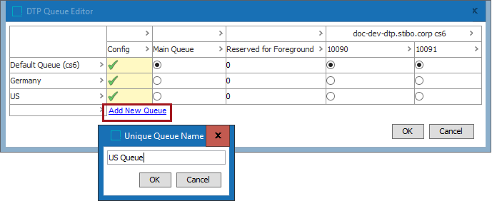 - In the DTP Queue Editor dialog, click 'Add New Queue.'