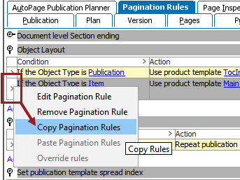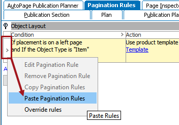 - On the Pagination Rules tab, click the arrow icon next to the rule you want to copy, right-click, and then select Copy Pagination Rules.
