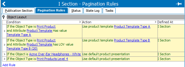 - In the Tree, click the destination publication, section, or subsection and go to the Pagination Rules tab.
