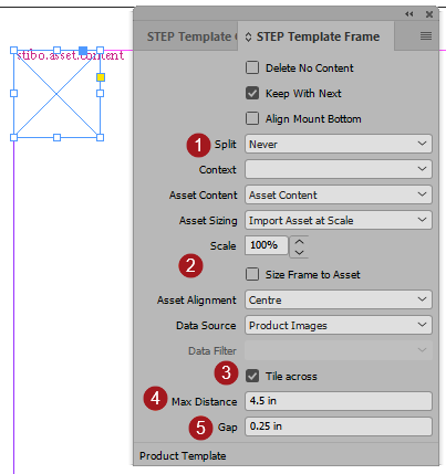 - The following STEP Template Frame parameters must also be applied to the image frame. The numbers in the following screenshot correspond to the numbers in the list below the screenshot.