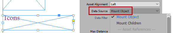 - If not automatically selected when you chose the asset reference type, click on the Data Source dropdown list and choose Mount Object.