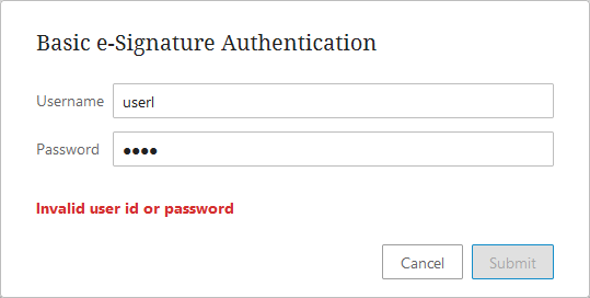 This provides a more secure interface, since the desired action is triggered only when the currently logged in user's username and password credentials are properly entered. If an incorrect username or password is entered an error message is displayed.