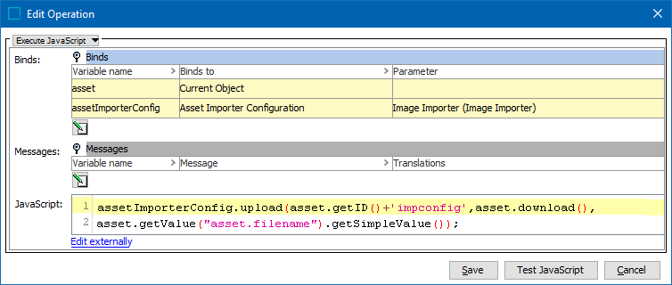 assetImporterConfig.upload(asset.getID()+'impconfig',asset.download(), asset.getValue("asset.filename").getSimpleValue());