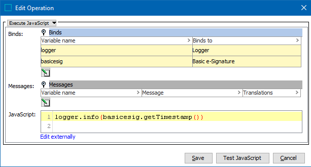 In the Edit Operation dialog, optionally add Messages, as defined in the Localized Messages for JavaScript Business Rules topic.