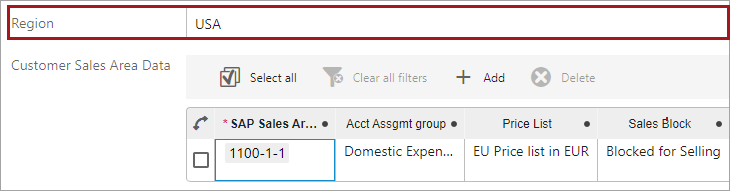 If USA’ is selected in the ‘Region’ field, the ‘Currency’ column is hidden, as it is no longer relevant for selection.