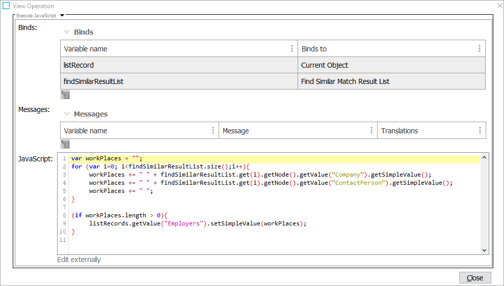 In the Edit Operation dialog, optionally add Messages, as defined in the Localized Messages for JavaScript Business Rules topic.