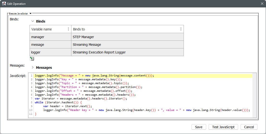 In the Edit Operation dialog, optionally add Messages, as defined in the Localized Messages for JavaScript Business Rules topic.