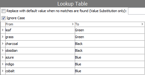 This example lookup table has an ID of 'ColorReplacement':