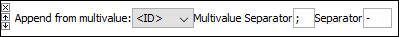Adds the multi-value text from the source (ID or Name or other attribute value), such as a suffix, to the end of the value. For an example using this transformation, refer to Merge Data for Multi-Valued Data Example. |