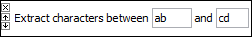 Extracts the texts between the specified starting text string and the specified ending text string. The start and end text string cannot be the same. For an example of this transformation, refer to Extract Characters Between and Extract Characters After Example. |