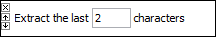 Extracts a specified number of characters of a value, counting from the end. For example, if 'British English' is the value being transformed, setting this option parameter to 7 extracts the text 'English'; and setting the parameter to 4 extracts 'lish'. |