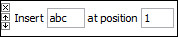 Inserts a series of characters into the attribute value at the specified position. For an example using this transformation, refer to Insert Text Example. |
