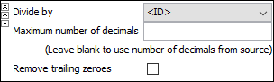 Performs the division operation on the value with the source. Only works for numeric values. |
