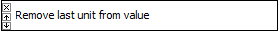 Removes only the last unit in a value of a numeric text, integer, fraction, or number attribute. For example, on the value ‘12 cm x 16 mm’, this transformation removes the last unit ('mm') and results in '12 cm x 16'. |