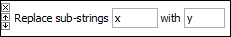 Changes the specified text string or empty value with the replacement text string or empty value. All matches on the value in the 'Replace sub-strings' text box are replaced. For an example of this transformation, refer to Replace Substrings of the Value Example. |