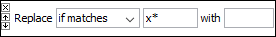 Uses regular expression to change the specified find value (in the first text box) with the replacement value (in the second text box). From the dropdown, select a replace option: 'if matches', 'first match of', or 'every match'. The if matches option must be set so that the find field defines the entire string to be replaced because it operates like the 'Replace the whole value' transformation. The first match of and every match options operate like the 'Replace substrings of the value' transformation and they replace only the text specified in the find field. For more information on regular expression and practical examples, refer to the Regular Expression topic. |