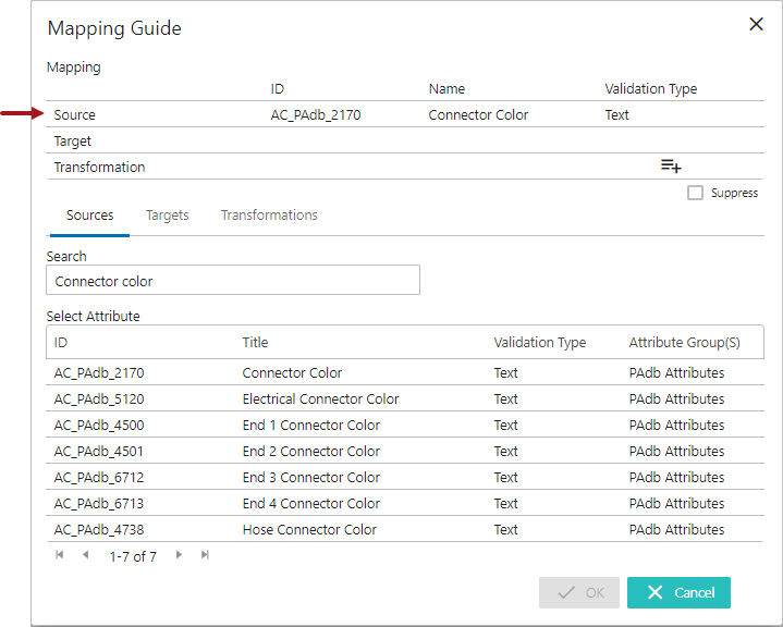 Once selected, the attribute will be populated in the Source field (as shown below)