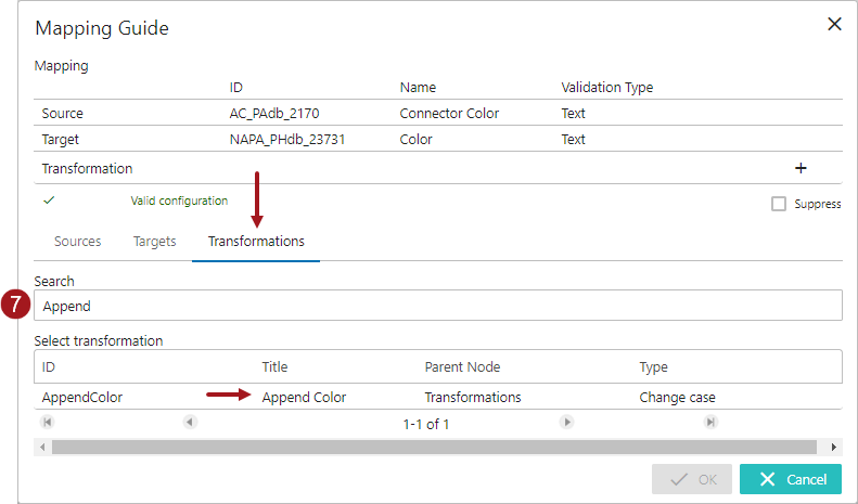 The selected transformation will be populated in the Transformation field (as shown below).